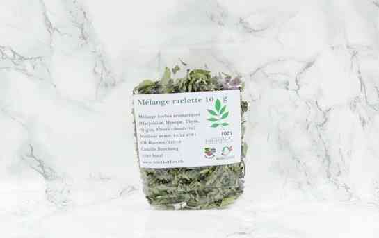 Mélange aromatique spéciale raclette. Vous y retrouvez Marjolaine, Hysope et Thym.